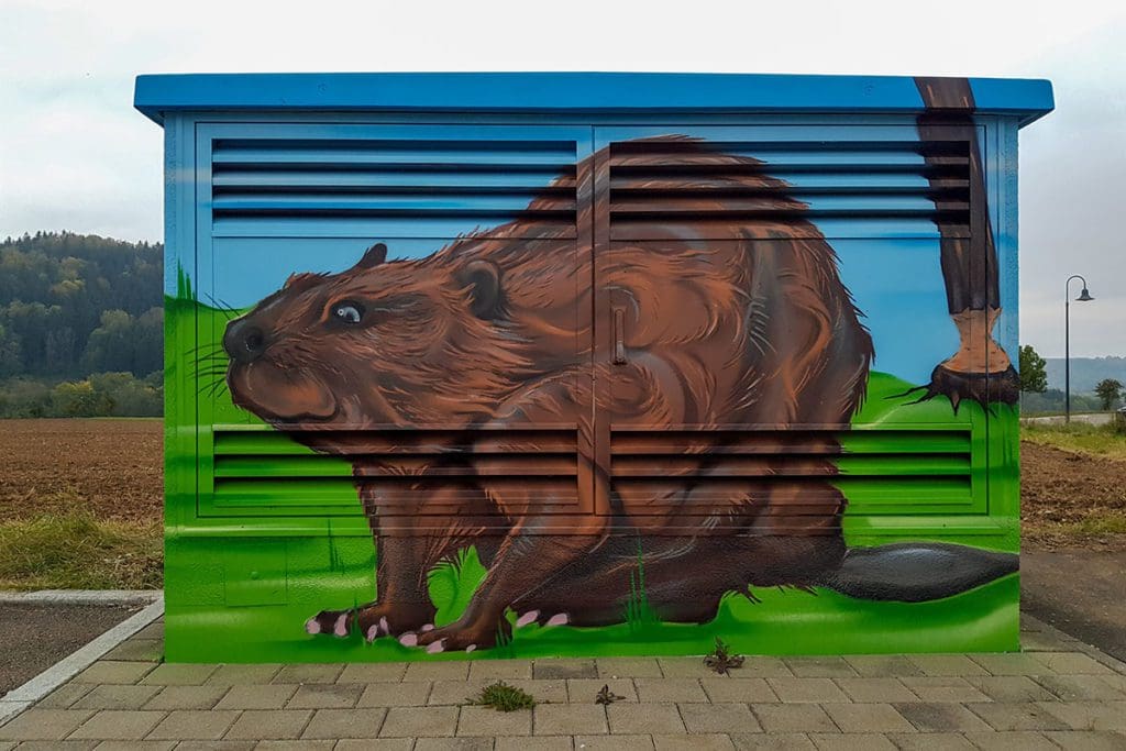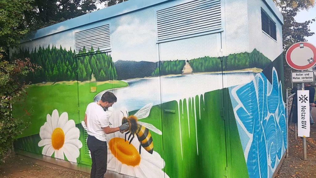 Graffiti Fassadengestaltung Trafostation Netze BW Rangendingen