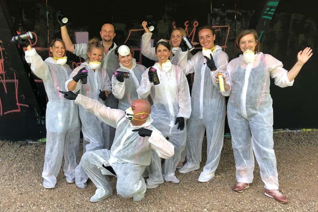 Teambuilding mal anders! Zusammen mit Mitarbeitern von Robert Bosch sprühte Micha ein cooles Graffiti.