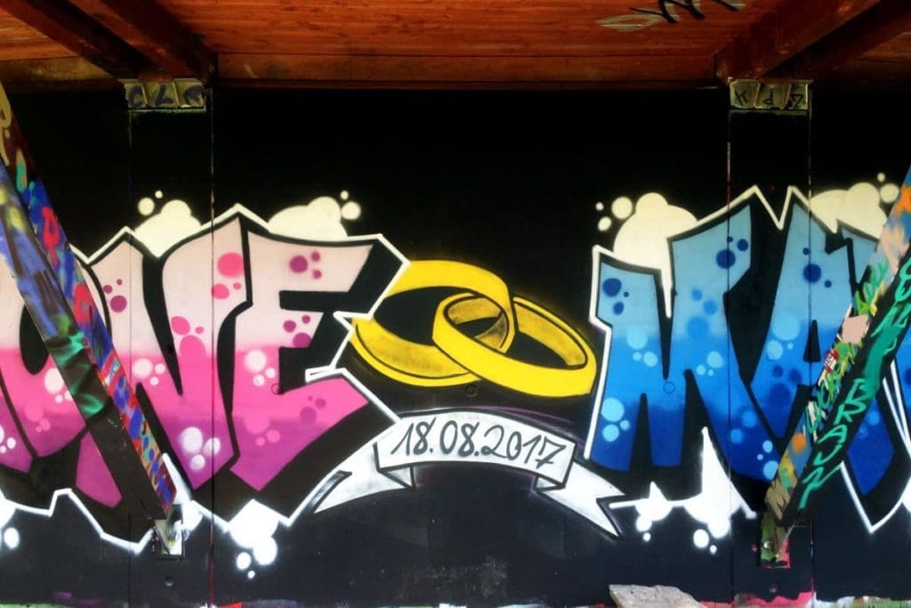 Graffiti Junggesellinenabschied \“SIMONE&MATZE\“