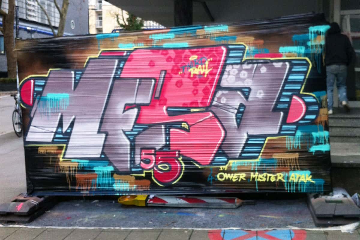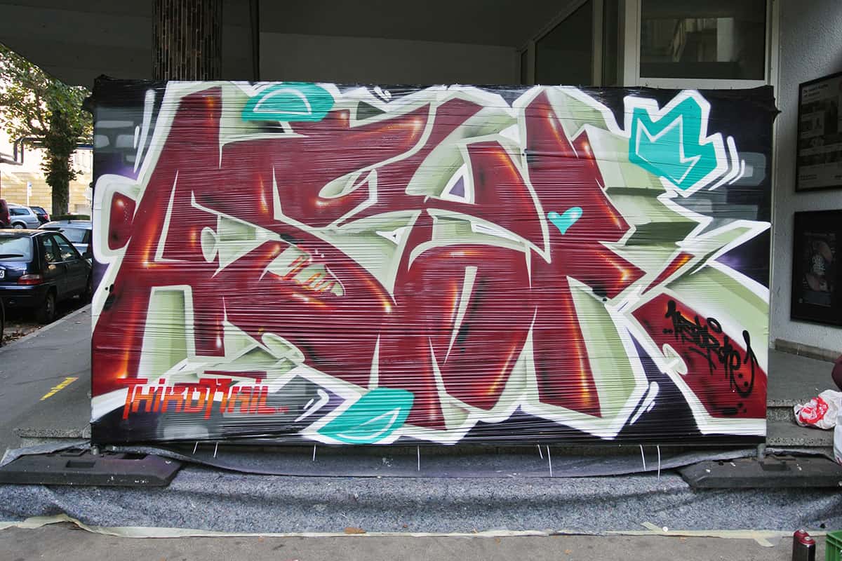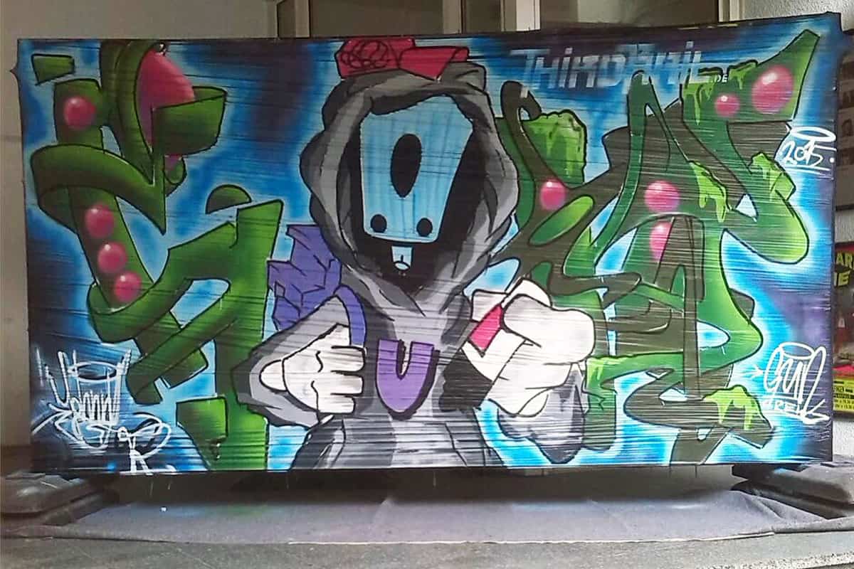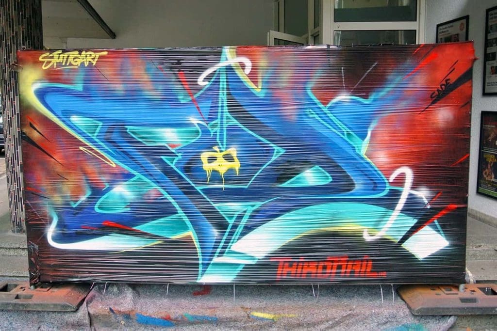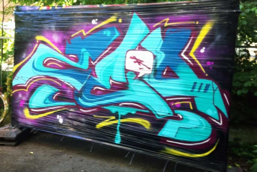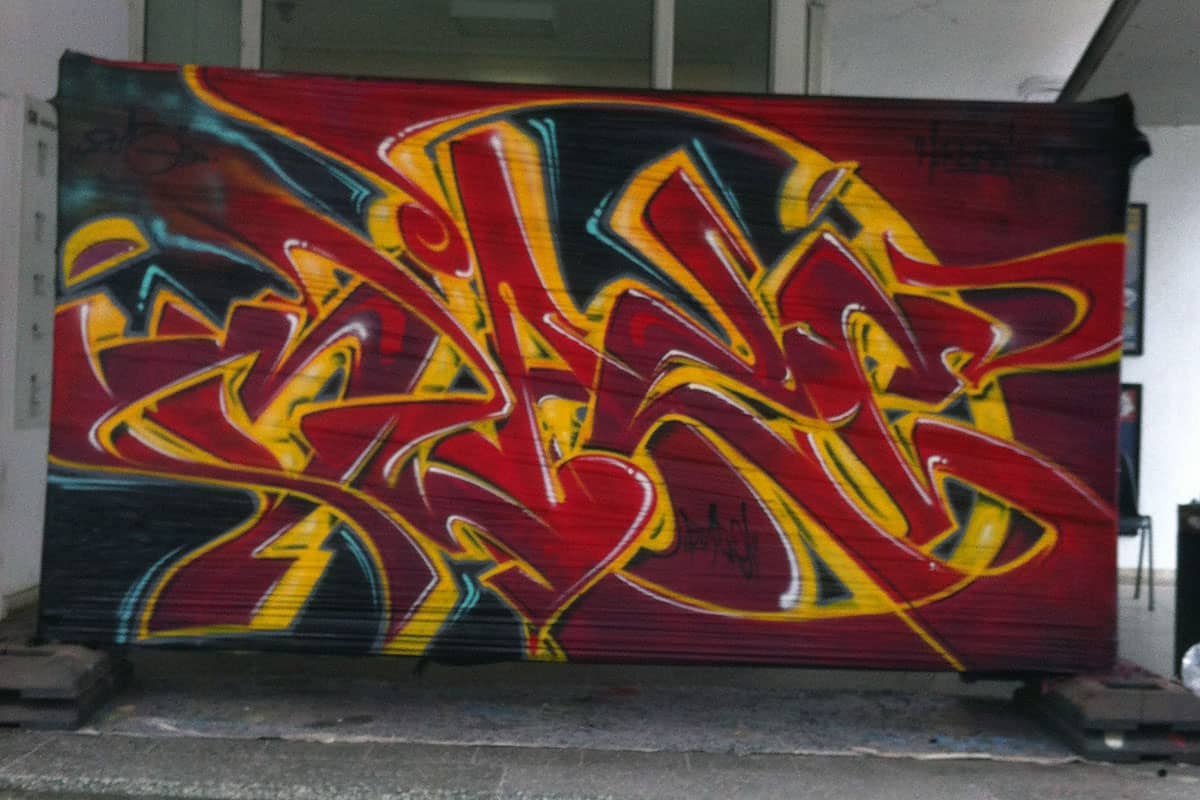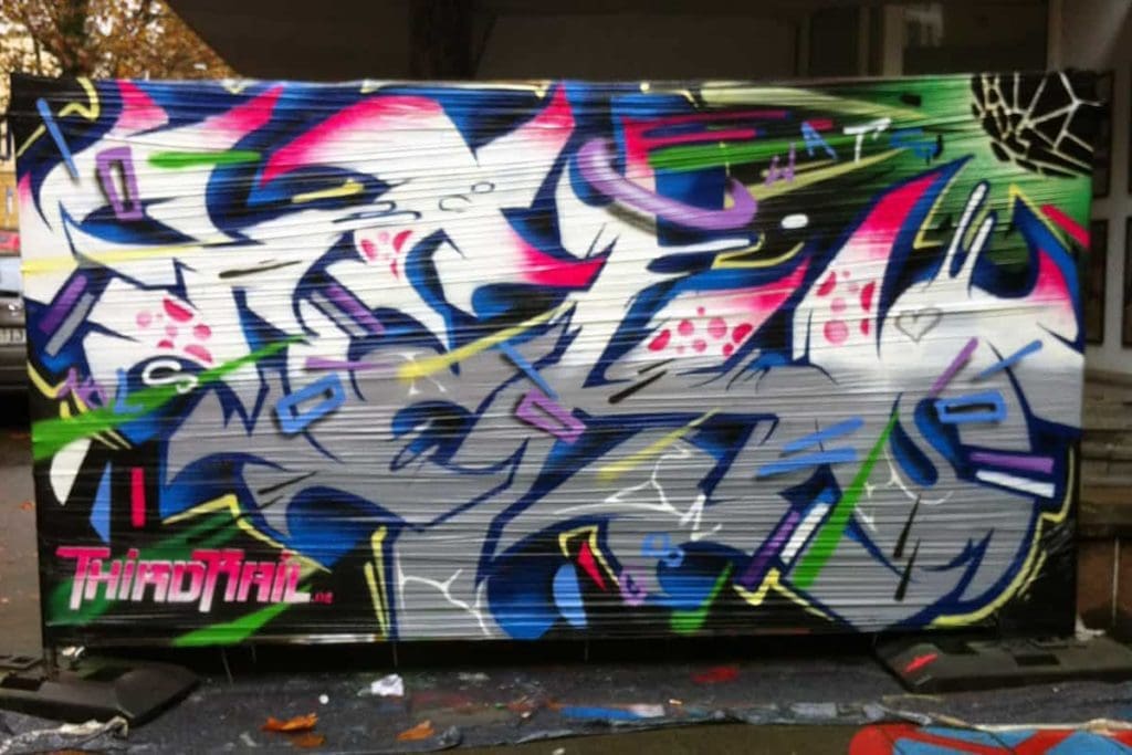 Das Herzstück der Hall of Fame ist ein Bauzaunelement in der Größe von 350×200 cm, das mit einer speziellen Moltow Film Canvas Folie umwickelt ist. Diese Leinwand steht direkt vor dem Thirdrail Graffiti Laden in Stuttgart und dient als kreativer Freiraum, den lokale und regionale Graffiti-Writers jeden Samstag neu gestalten dürfen.