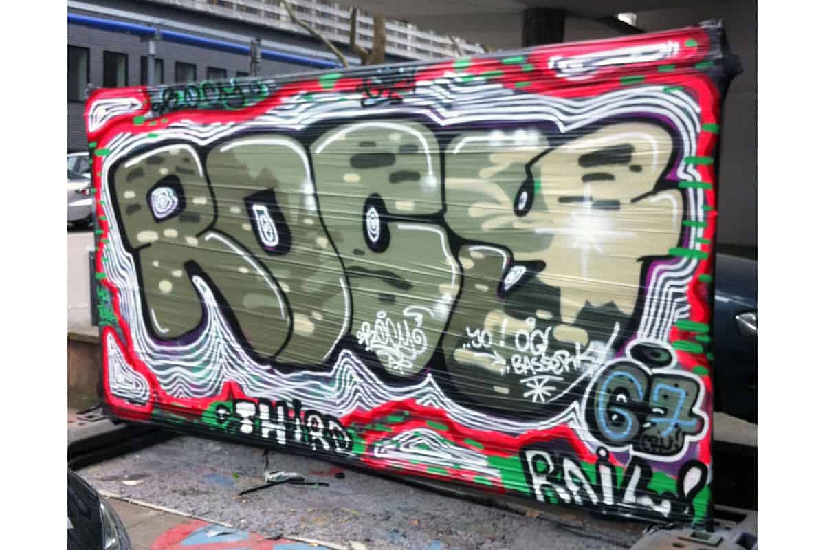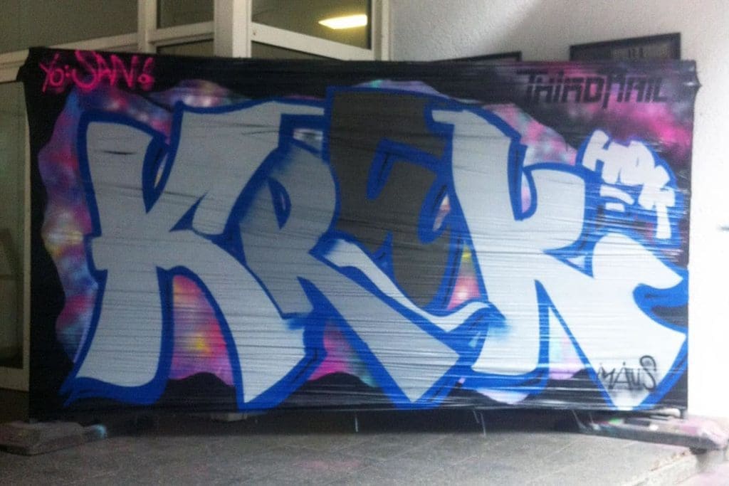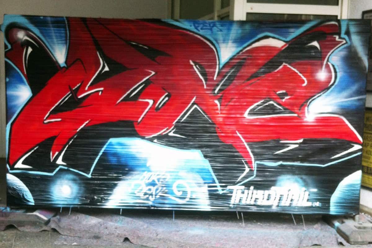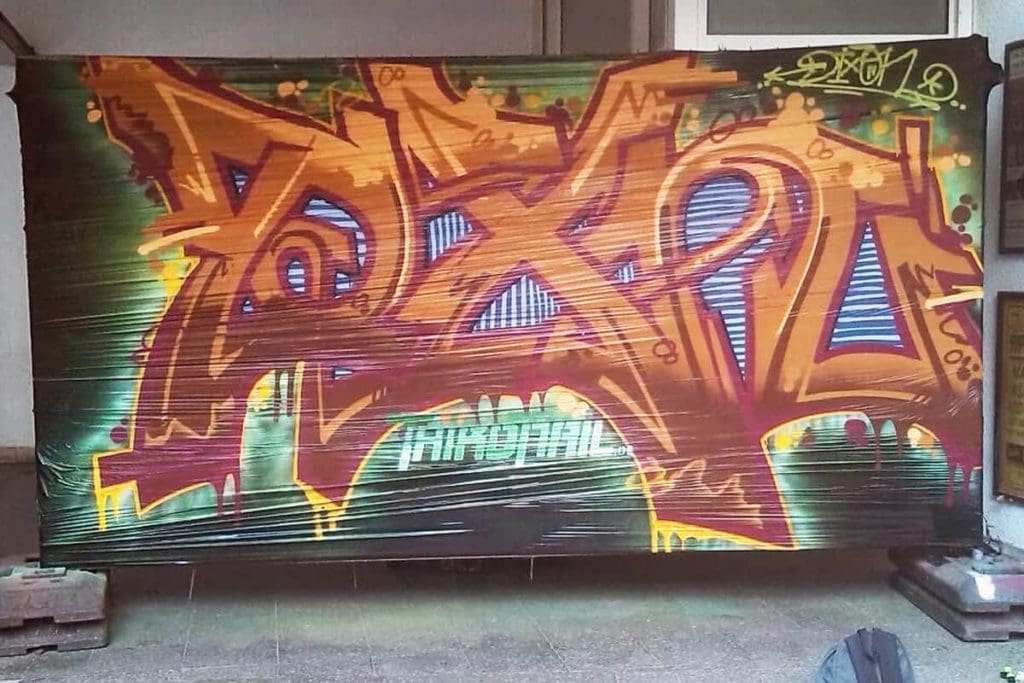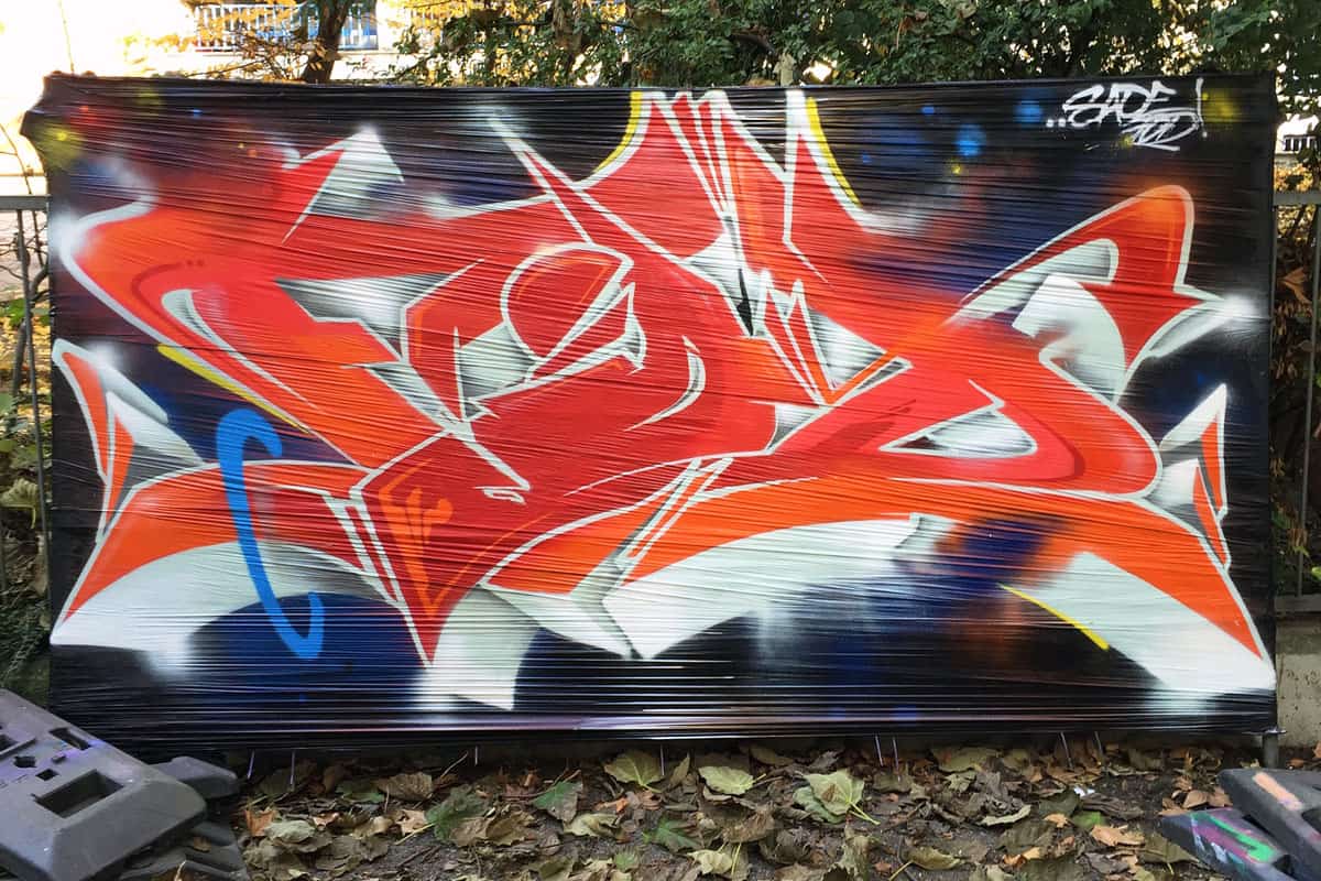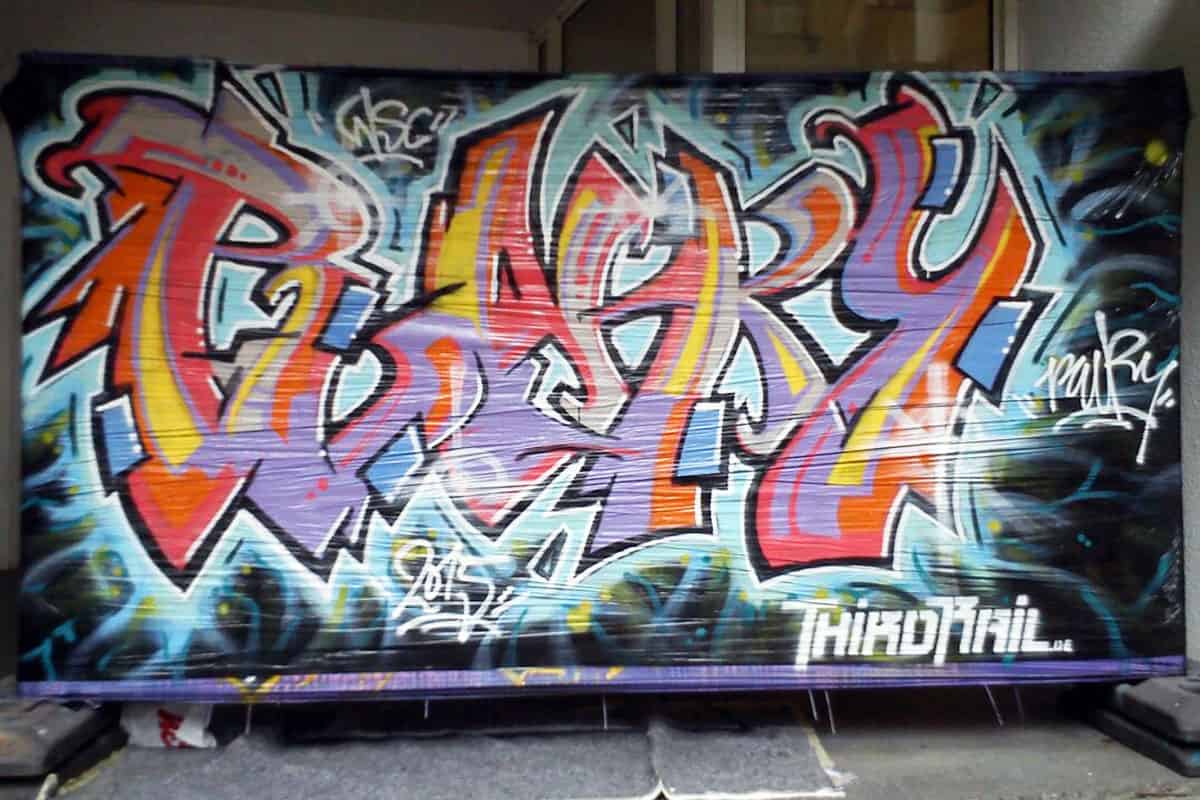 Das Herzstück der Hall of Fame ist ein Bauzaunelement in der Größe von 350×200 cm, das mit einer speziellen Moltow Film Canvas Folie umwickelt ist. Diese Leinwand steht direkt vor dem Thirdrail Graffiti Laden in Stuttgart und dient als kreativer Freiraum, den lokale und regionale Graffiti-Writers jeden Samstag neu gestalten dürfen.
