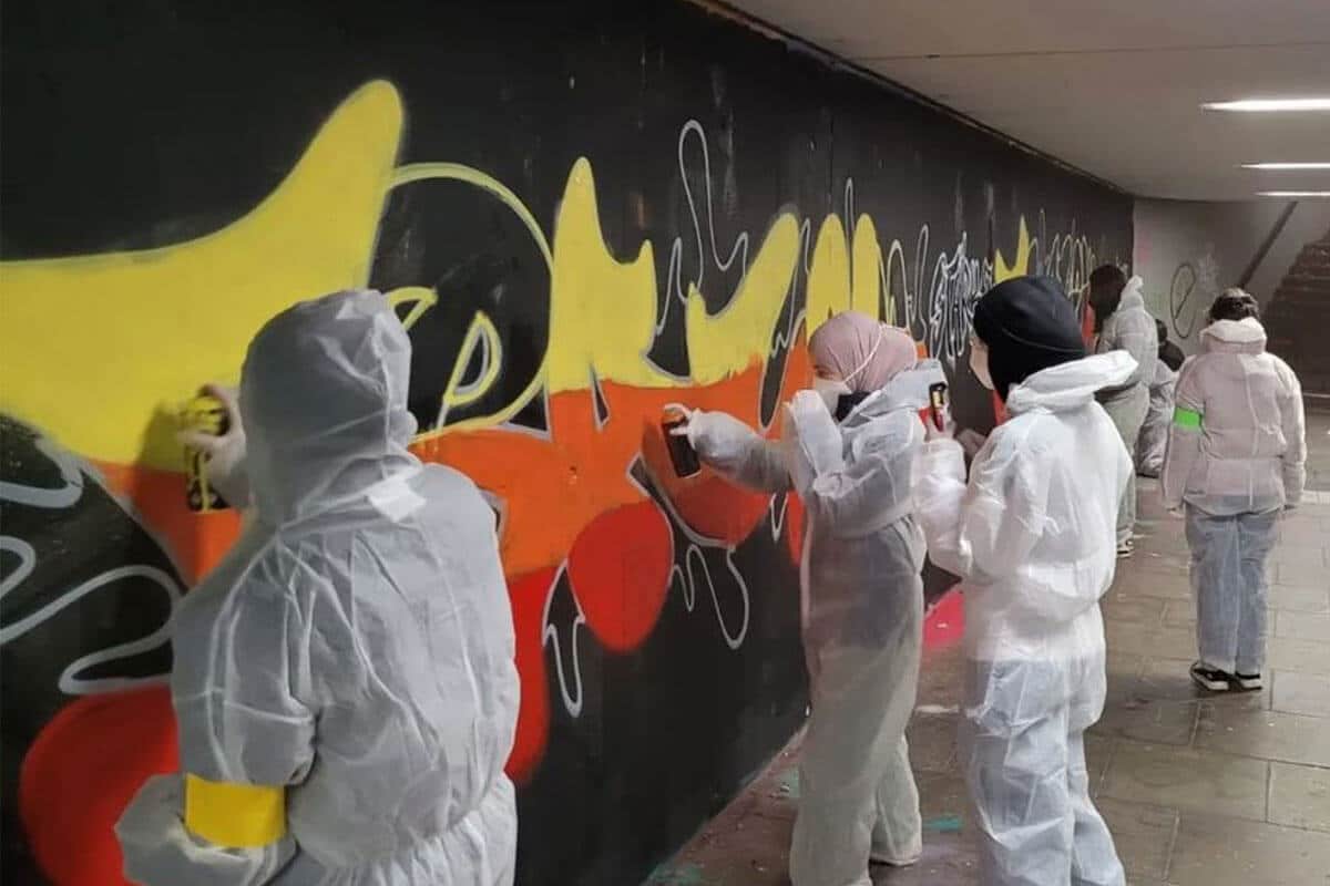 Wir von GRAFFITI STUTTGART wurden von Gemeinde Gammertingen beauftragt eine Sportplatzwand mit Jugendlichen zu bestalten Am Tag der Veranstaltung übertrug Dominik das vorab skizzierte Logo des Royals Baseball Vereins auf die Wand. Die jugendlichen Teilnehmer malten nach einer ersten Unterweisung mit Sprühdosen und unter Anleitung das Graffiti aus. Anschließend sprühte Dominik noch die Details, Konturen