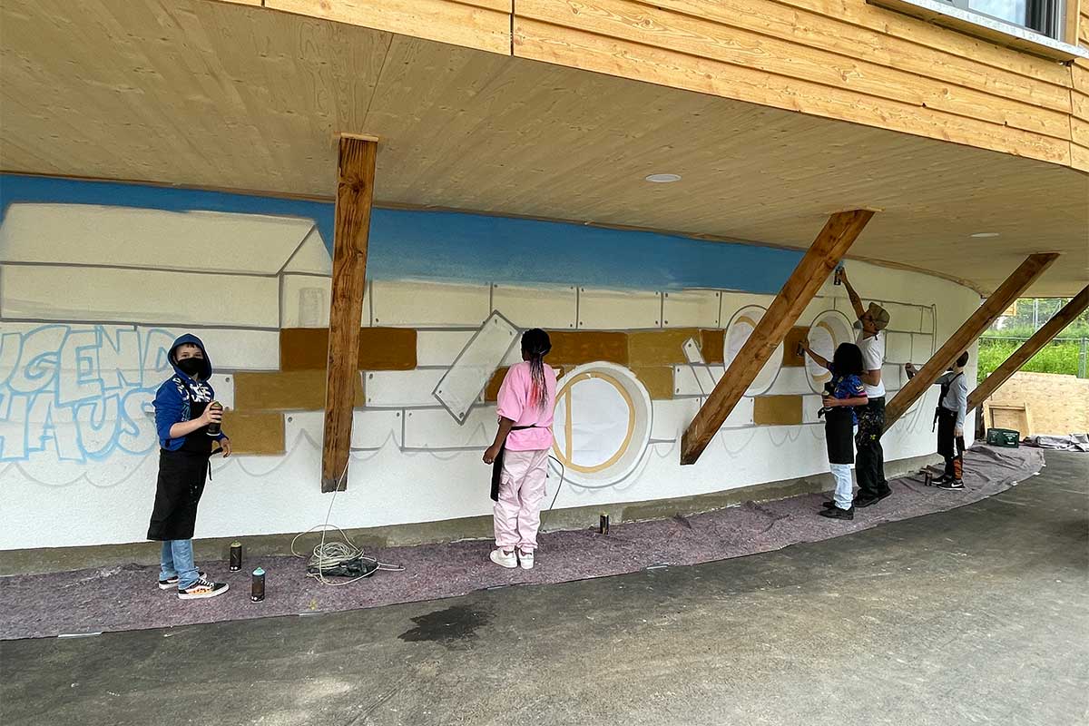 Nun lädt das Jugendhaus wieder alle Kinder und Jugendlichen dazu ein, die neuen Räumlichkeiten zu entdecken und Teil einer Gemeinschaft zu werden, die Kreativität und Mitgestaltung fördert. Die farbenfrohe Graffiti-Fassade spiegelt den offenen und lebendigen Geist des Hauses wider und ist ein Symbol für den Neuanfang nach der Renovierung.