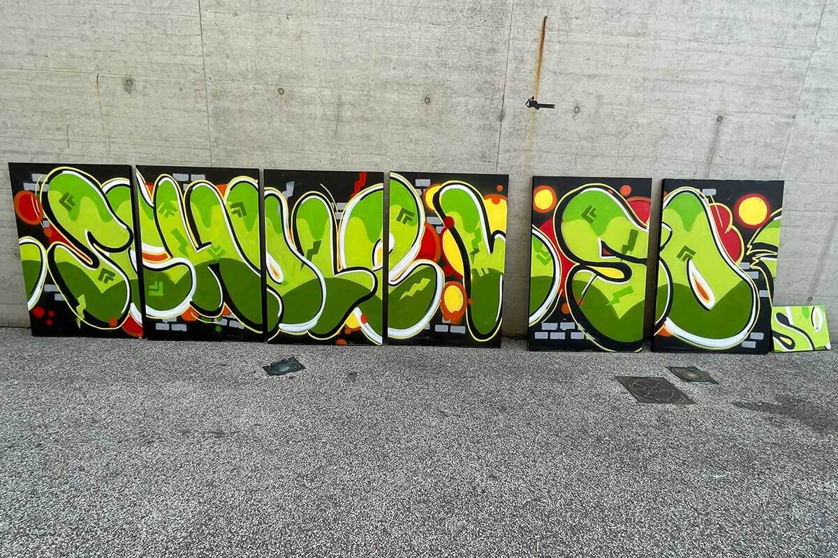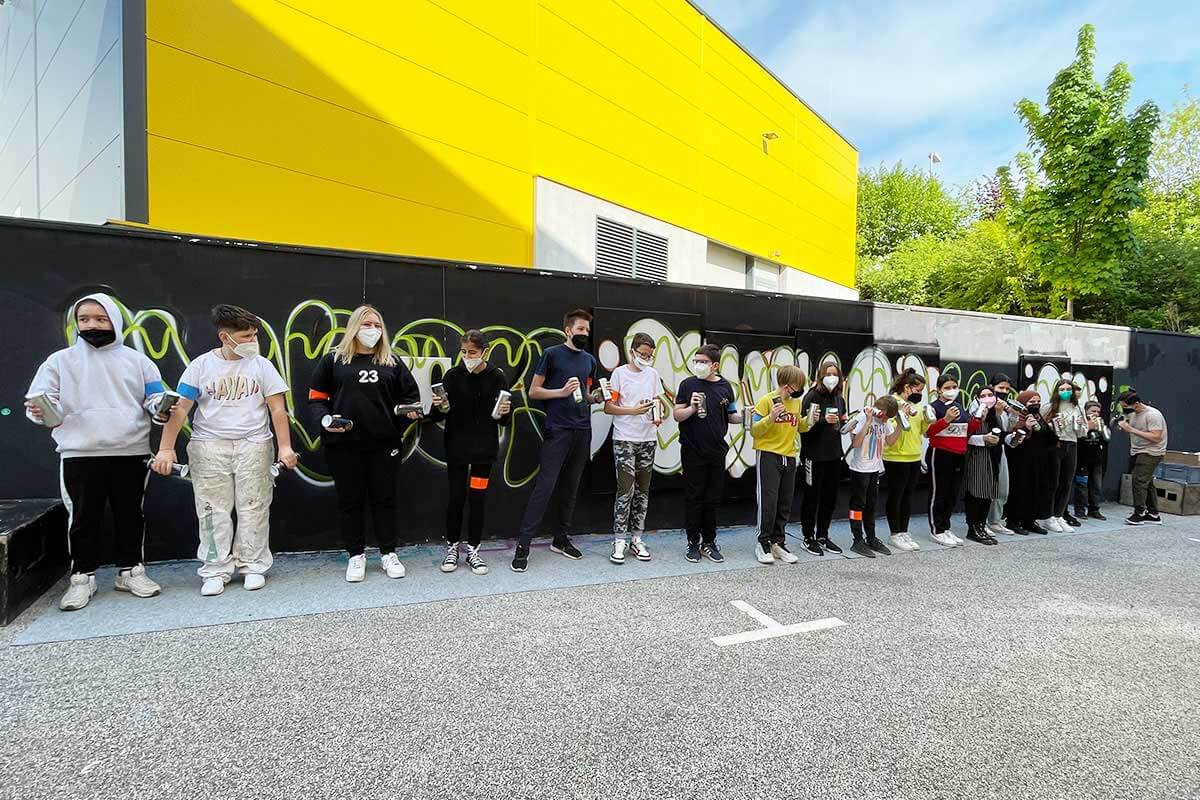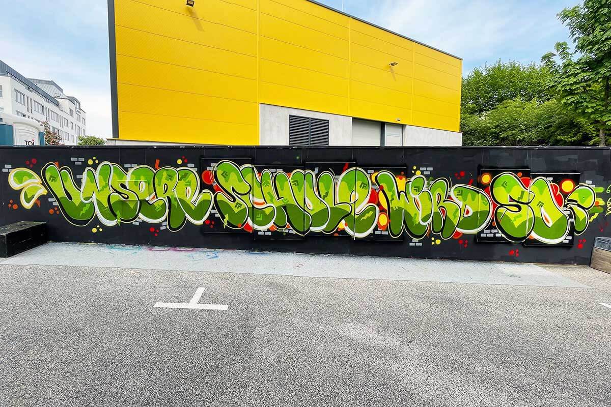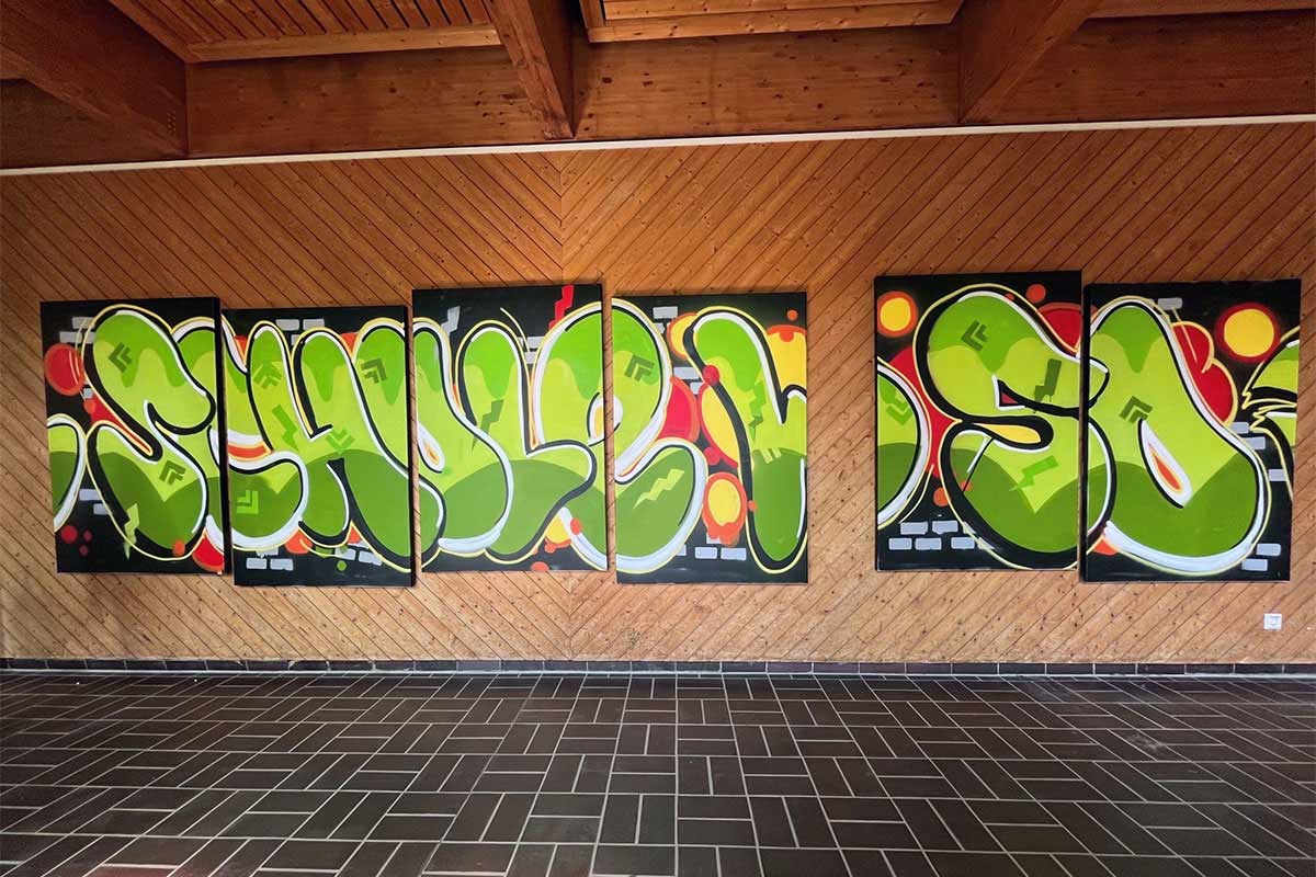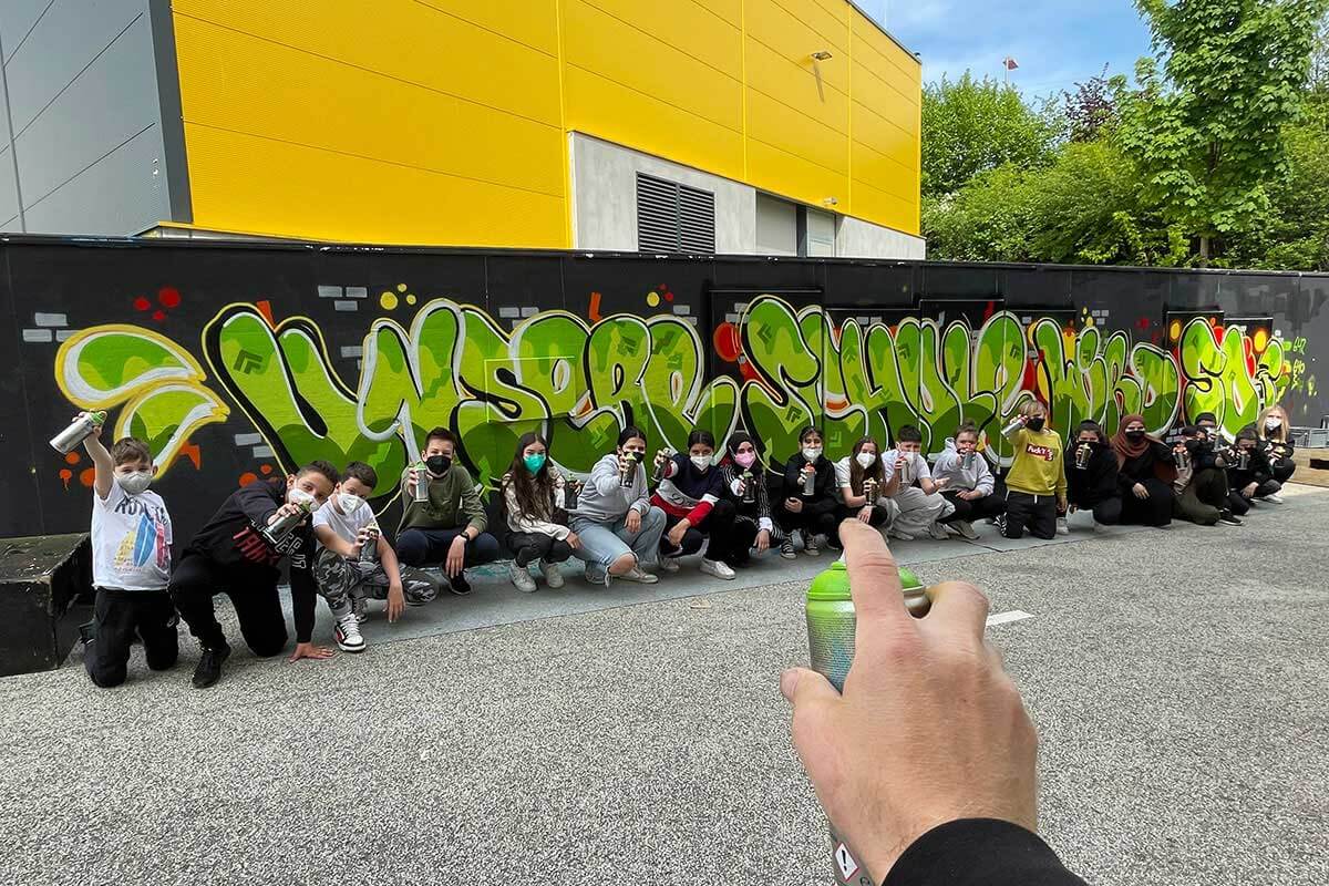 Die Klasse 10c des Evangelischen Lichtenstern Gymnasiums Sachsenheim gestaltete in der Hall of Fame Bad Cannstatt ein kreatives Graffiti-Projekt. Unter Anleitung der Künstler Patrick und Claudius malten die Schüler ihr Logo auf die Wand, umgeben von lebendigen Farben, die Teamgeist und künstlerisches Talent zelebrieren.