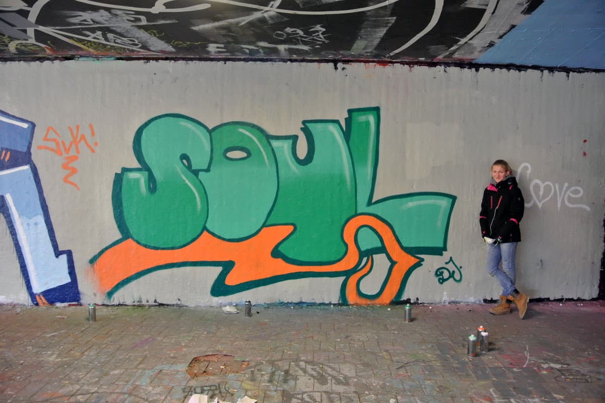 13 Teilnehmende, bunt gemischte Altersgruppen, eine Wand voller Farbe: Der Just Spray Schnupperkurs im April zeigte wieder, was möglich ist, wenn Stuttgarter die Sprühdose zum ersten Mal in die Hand nehmen. Profi-Coaching, 6 Wunschfarben und alles inklusive – an der legalen Hall of Fame Bad Cannstatt.