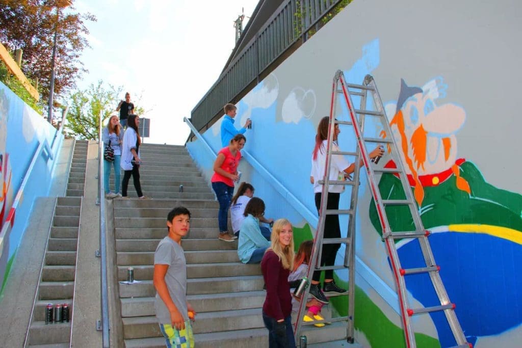 Mit den Kids vom Jugendtreff Casa Nostra in Böblingen haben wir die Außenfassade des Gebäudes für die Jugendlichen verschönert. Enstanden ist ein cooles Casa Nostra Graffiti, umrahmt von bekannten Comicfiguren, wie z.B. Lisa Simpson und Spongebob. Das unscheinbare Gebäude hat sich prompt in ein kunterbuntes Kunstwerk verwandelt.