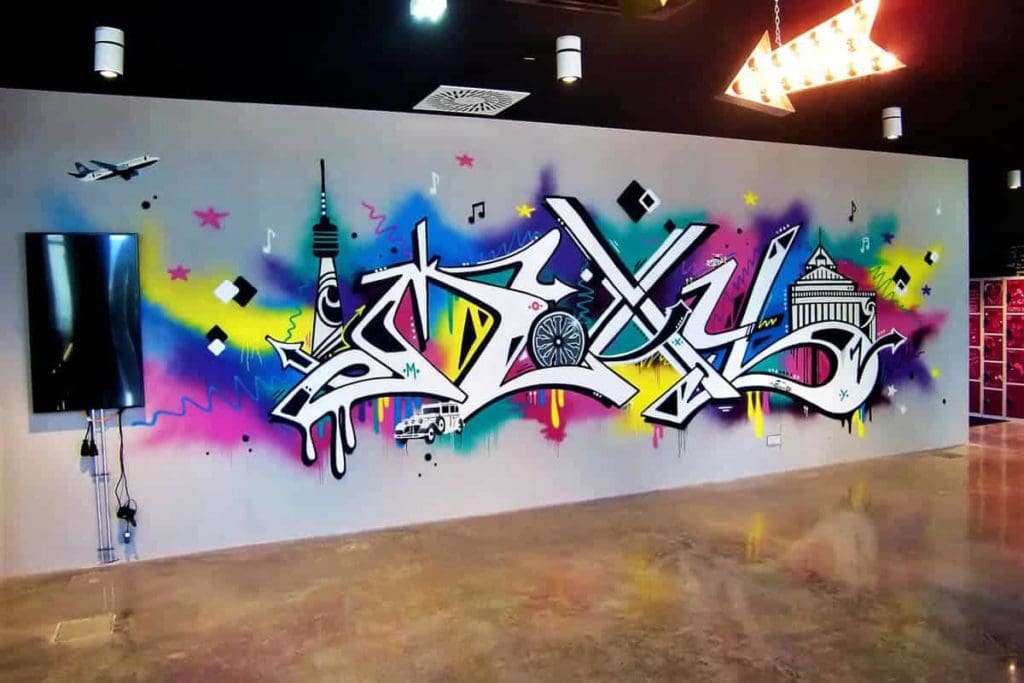 Graffiti Innenraumgestaltung Hotel Moxy Stuttgart Airport Messe