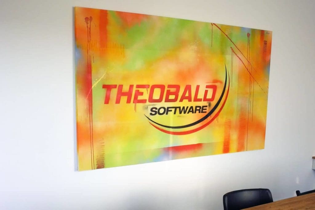Graffiti Leinwand Gestaltung \“THEOBALD SOFTWARE\“ Wir von Graffiti-Stuttgart wurden vom Theobald Software beauftragt das Firmenlogo auf eine Leinwand umsetzen.