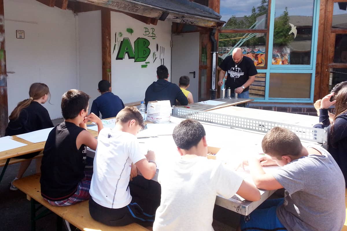 Lena, Ben und die Jugendlichen vom JUGENDTREFF CAMP FEUERBACH hatten spontan die Idee einen Graffiti Workshop zu organisieren. Für uns kein Problem. In einem Zweitägigen Workshop lernten die Teilnehmer/innen theoretisches und geschichtliches über Graffiti sowie gestalterische Grundlagen. Zusammen mit Benny, der die Figuren vorskizzierte, sprühten die Jugendlichen vom Camp Feuerbach coole Marvel-Comic Characters wie zum